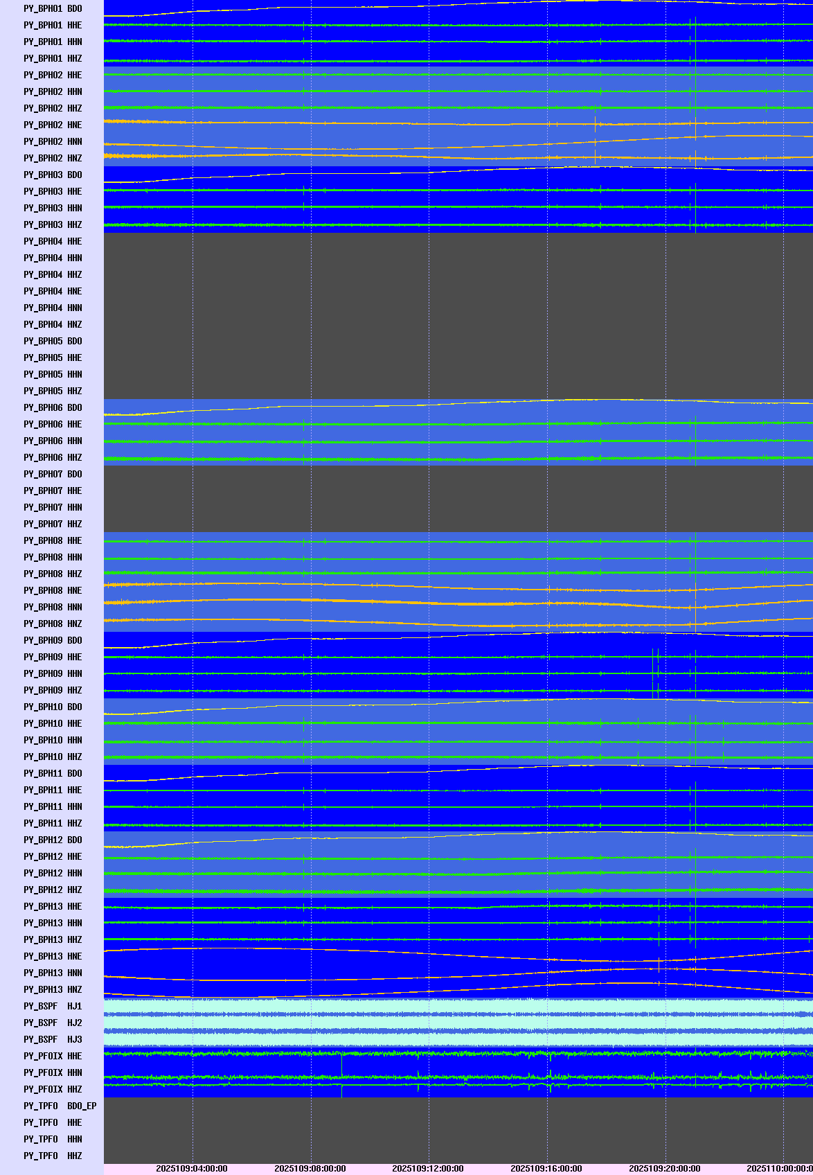 PFO Broadband Array Post Holes (PY) Waveforms 24 Hours Display For All Channels